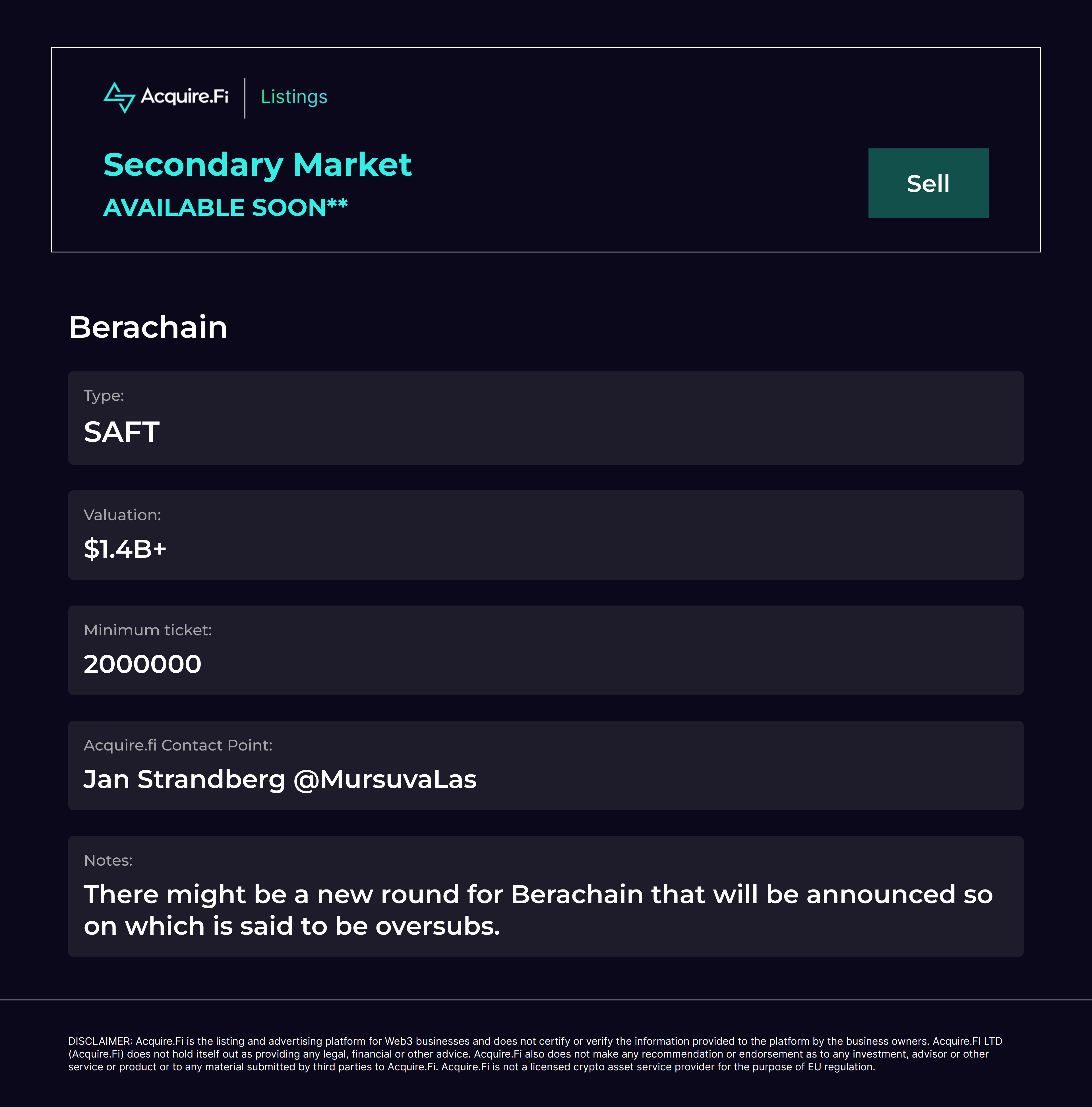 Secondary Market Sell: Berachain.Secondary Market Sell: Berachain