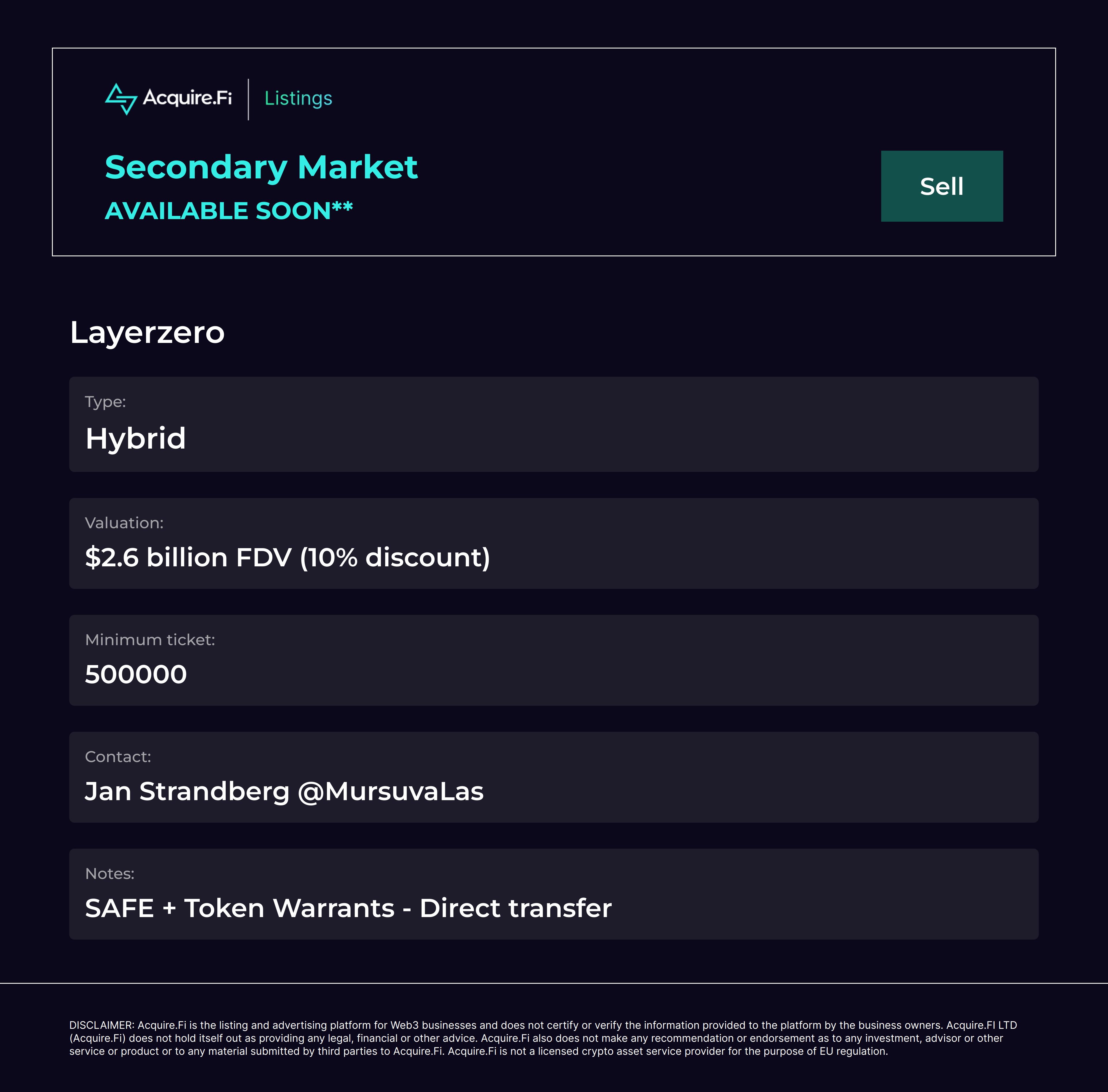 Secondary Market Sell: Layerzero