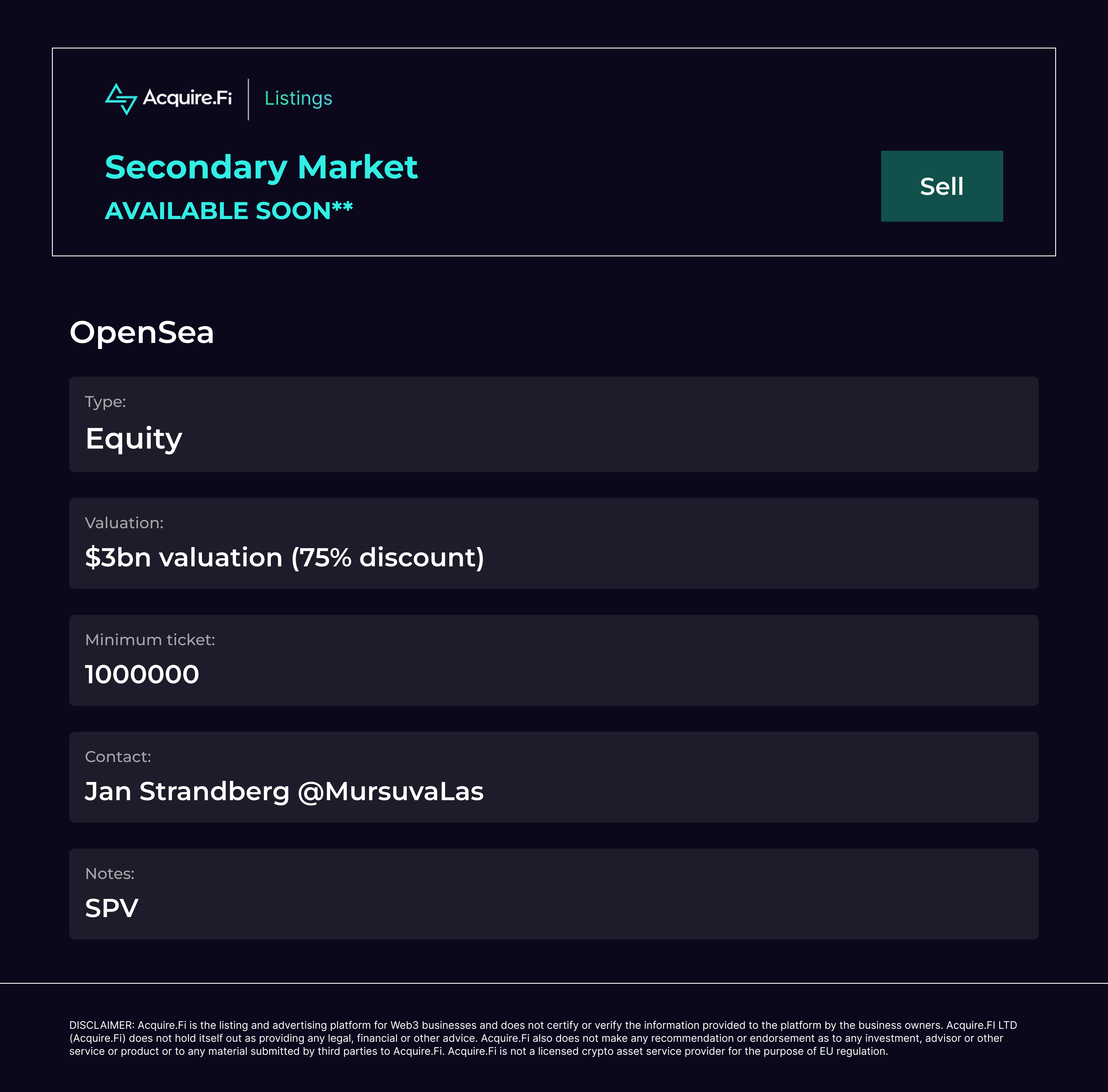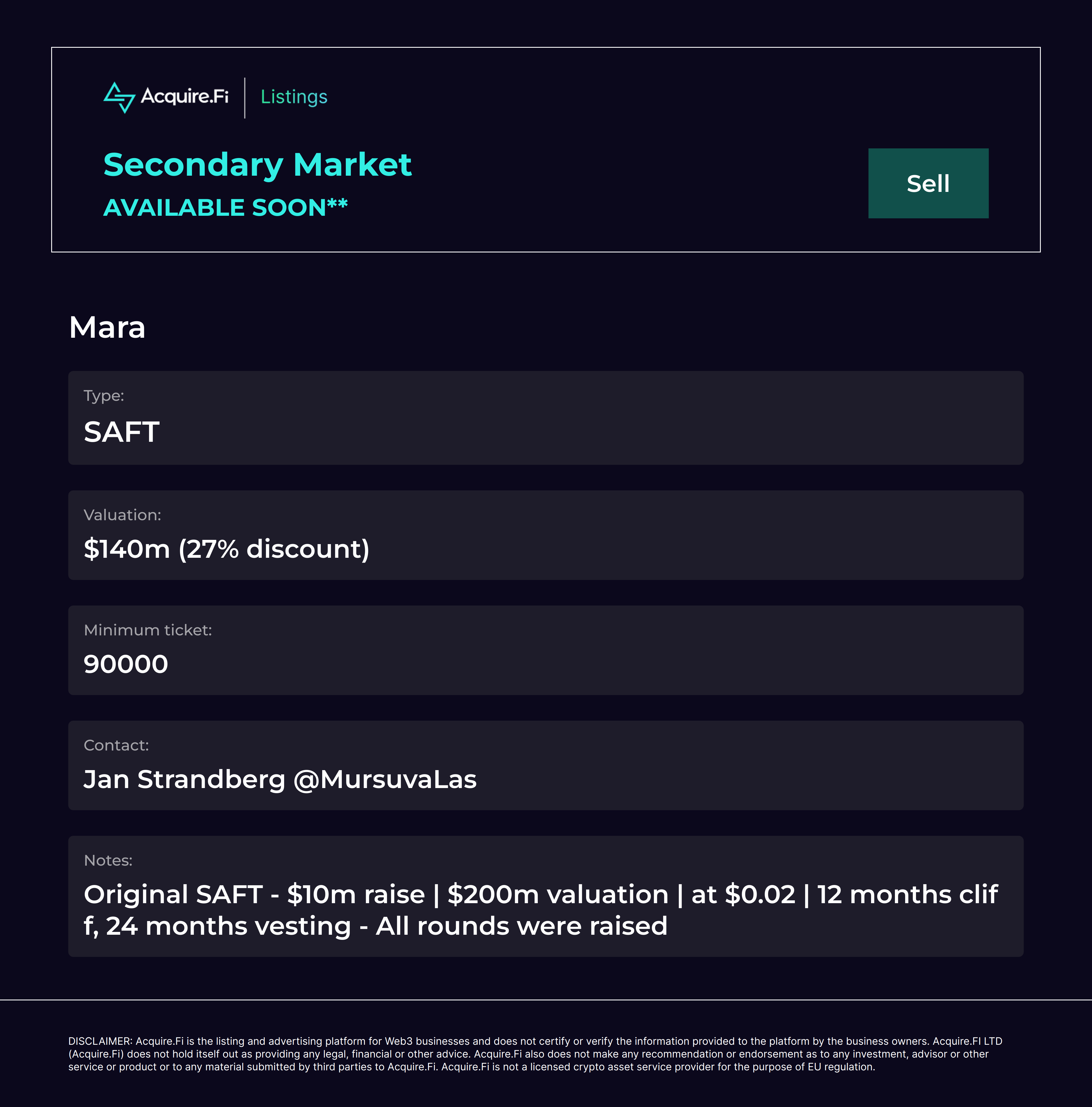 Secondary Market Sell: Mara.