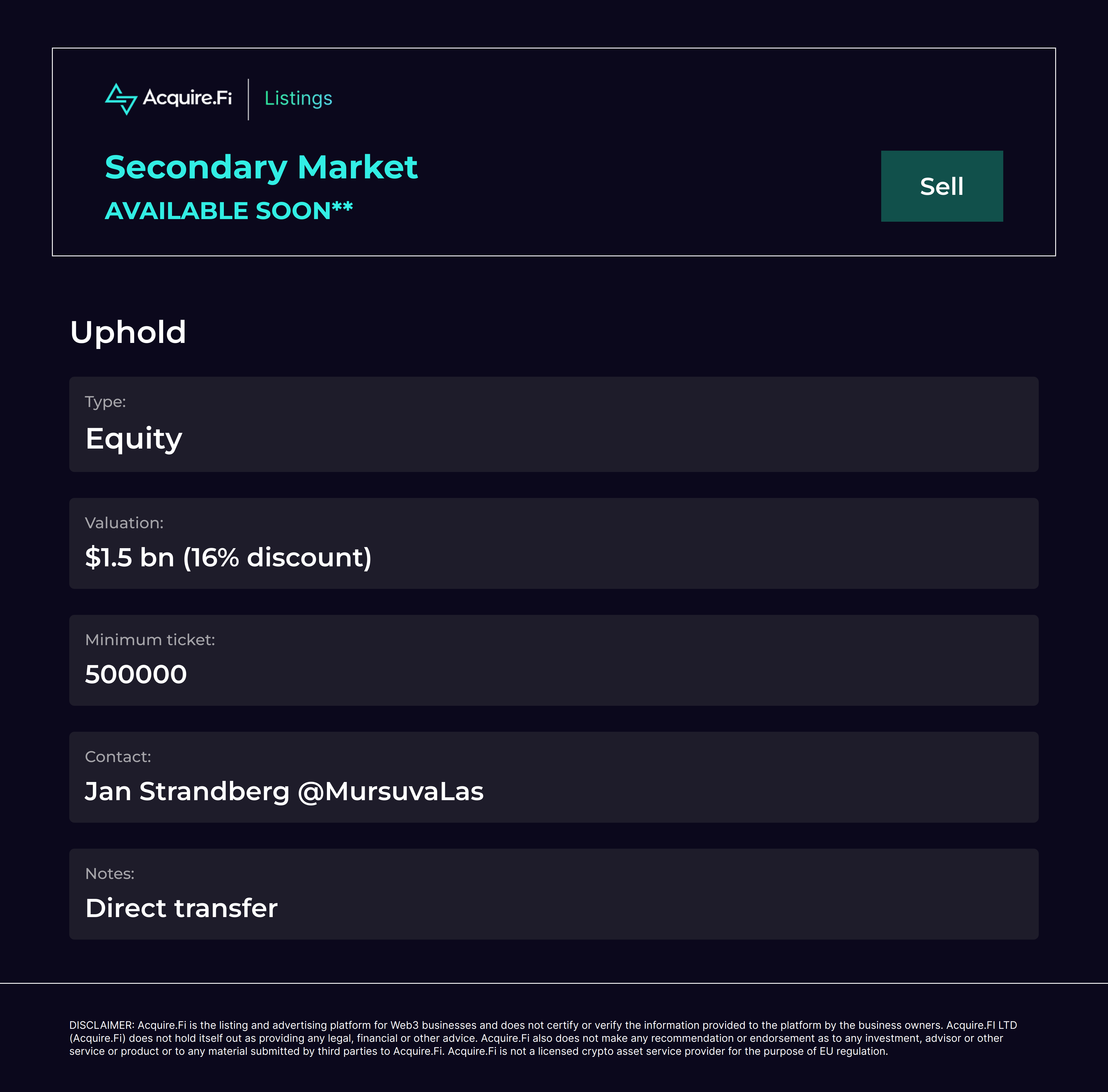 Secondary Market Sell: Uphold.