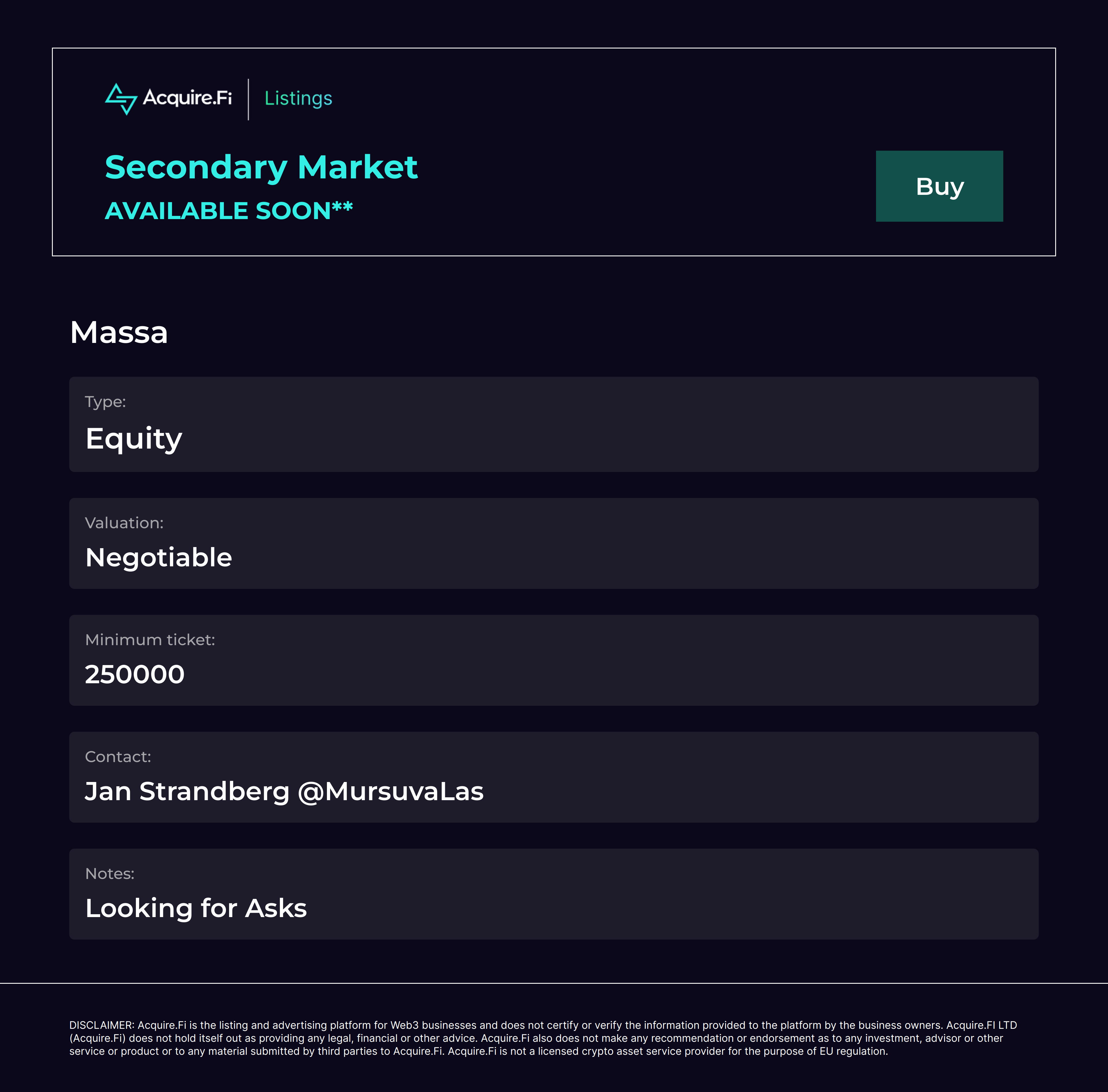 Secondary Market Buy: Massa