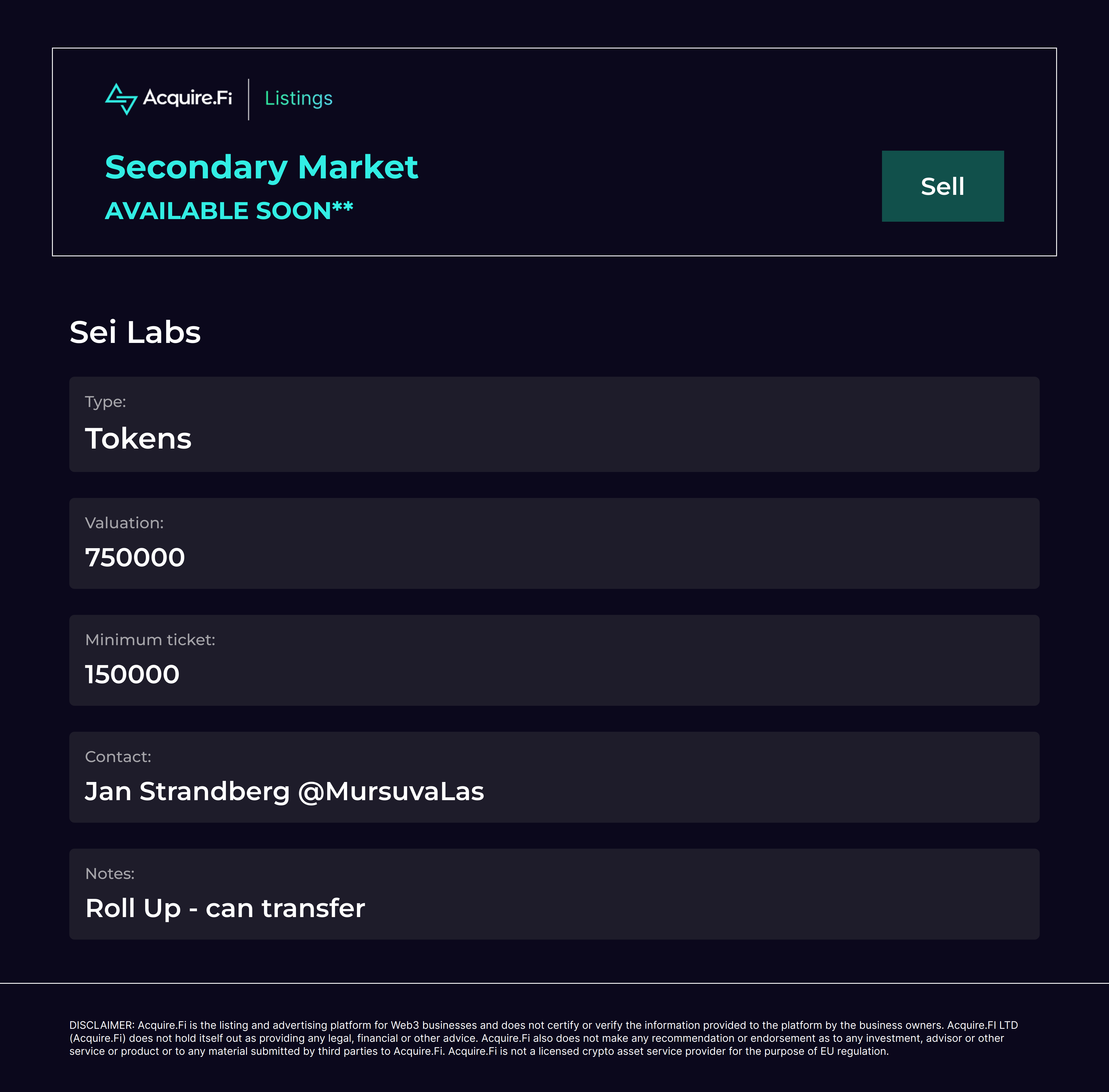 Secondary Market Sell: Sei Labs https://hcti.io/v1/image/55880ec8-008e-4823-8b23-1b5a3d252f5c