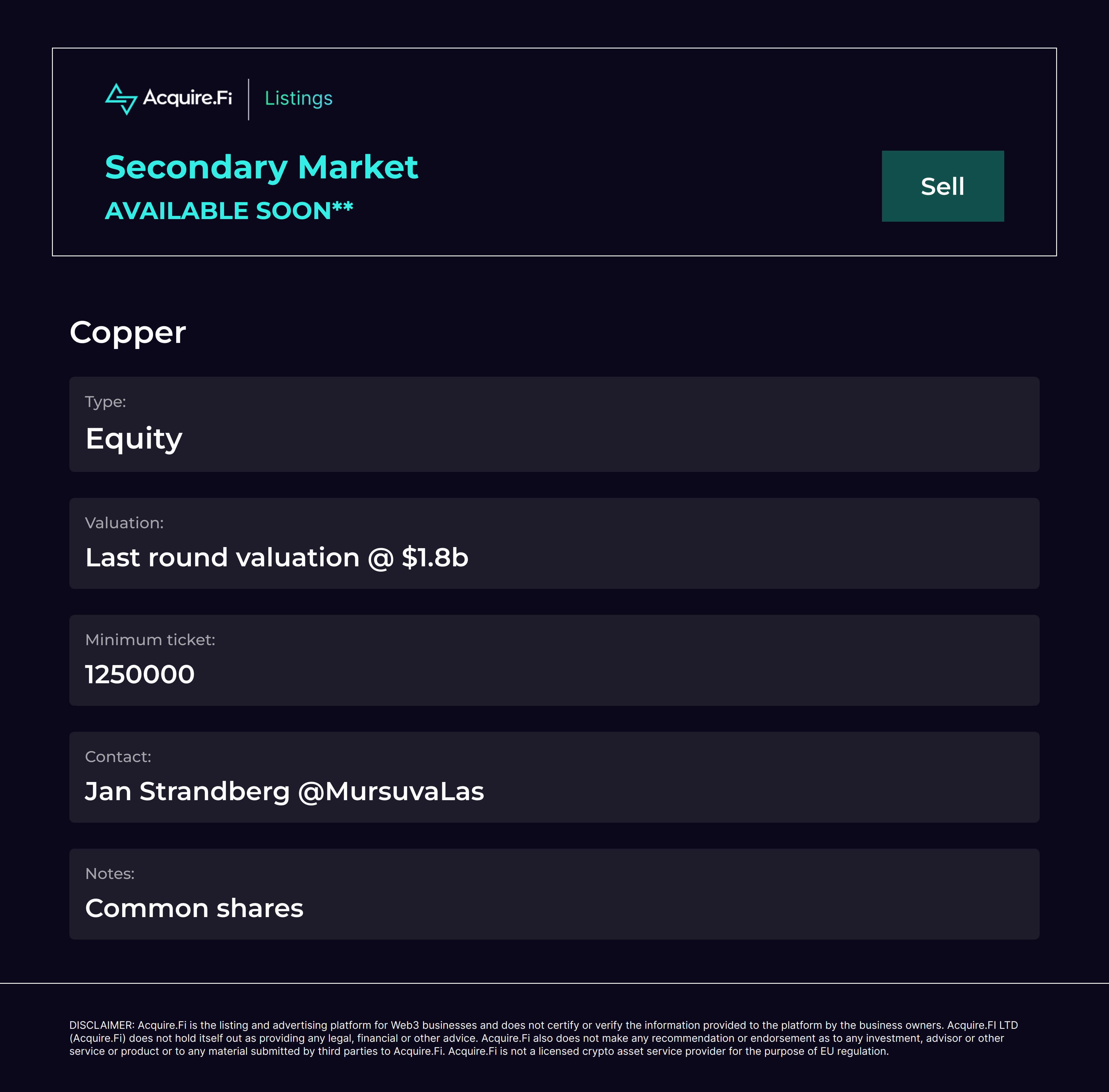 Secondary Market Sell: Copper https://hcti.io/v1/image/0bb3dea8-07e7-45ba-b24e-7fd56e44268e